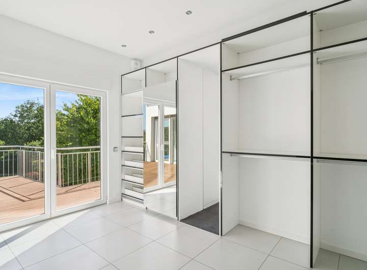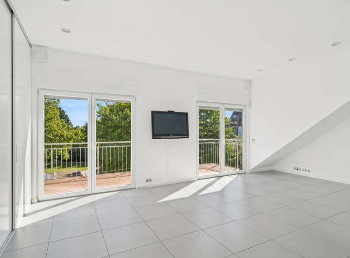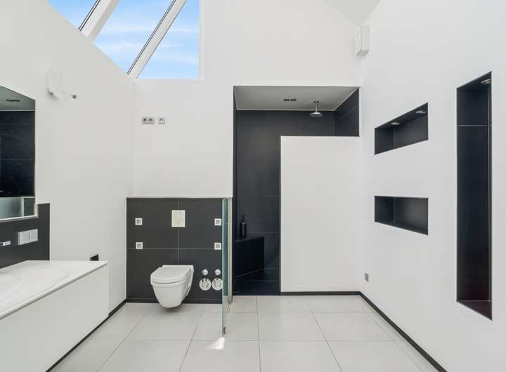 Im Dachgeschoss entfaltet sich ein exklusiver Rückzugsbereich, der durch seine räumliche Abgrenzung besonders viel Privatsphäre bietet. Der Masterbereich besteht aus einem großzügigen Schlafzimmer mit Balkonzugang, einem Ankleidezimmer und einem stilvollen Bad. Die Klimatisierung sorgt hier auch an heißen Tagen für angenehme Temperaturen.