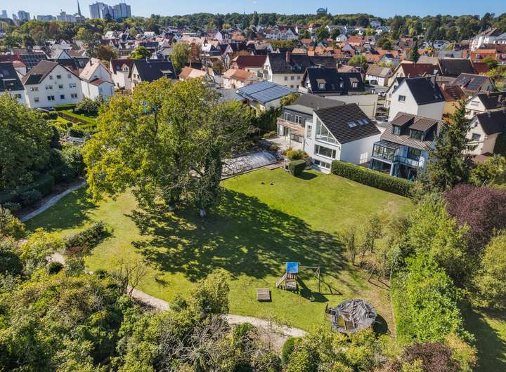 Auf einem über 2.500 m² großen, parkähnlich angelegten Grundstück präsentiert sich diese außergewöhnliche Villa mit einer Gesamtwohnfläche von mehr als 430 m². Die Immobilie vereint großzügiges Wohnen, hochwertige Ausstattung und verschiedene Nutzungskonzepte in einer der grünsten Lagen Frankfurts – im traditionsreichen Stadtteil Seckbach.