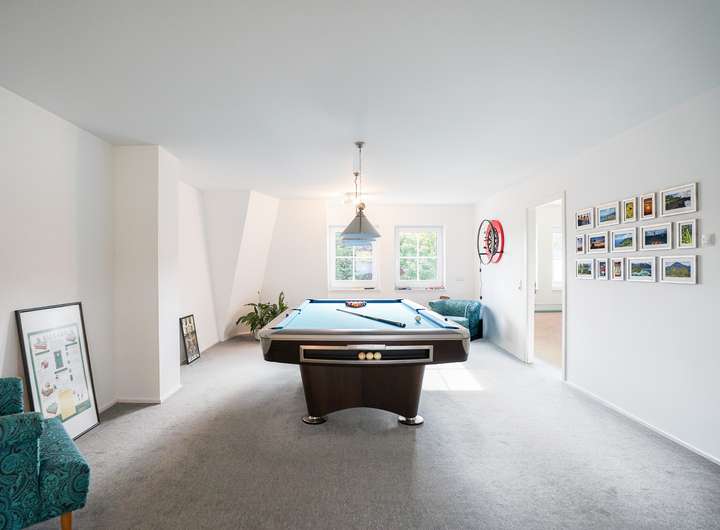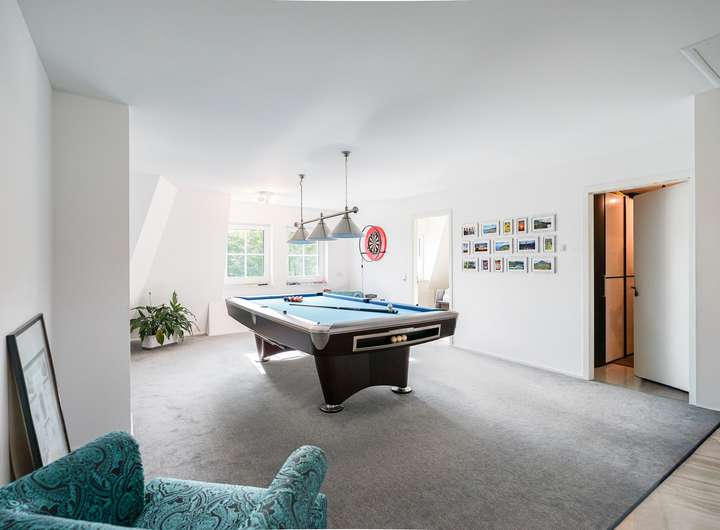 • Galerie im Obergeschoss, aktuell als Billardzimmer mit 9-Fuß-Turniertisch genutzt