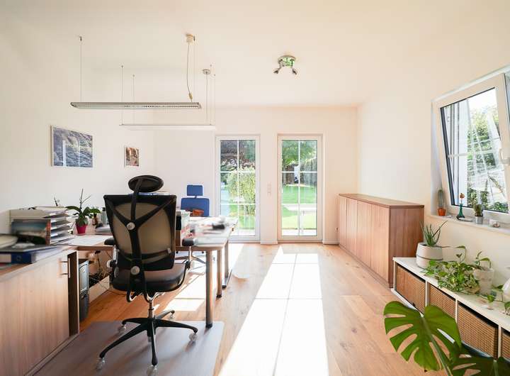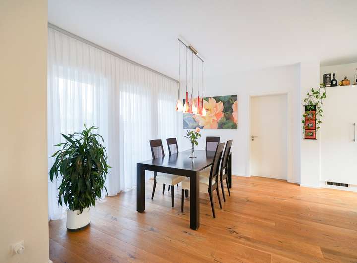 Das Haus wurde mit Liebe zum Detail und hochwertigen Materialien errichtet. Dank energieeffizienter LIAPLAN-Steine mit Dämmkern, dreifach verglaster Fenster mit Schallschutzklasse und elektrischen Rollläden, sowie das großzügig ausgebaute Obergeschoss im Mansardendachbauweise schaffen ein energieeffizientes und behagliches Raumklima. Im Erdgeschoss verbindet der offene Grundriss Wohn-, Ess- und Kochbereich zu einem lichtdurchfluteten Lebensraum, der Großzügigkeit und Wärme ausstrahlt.