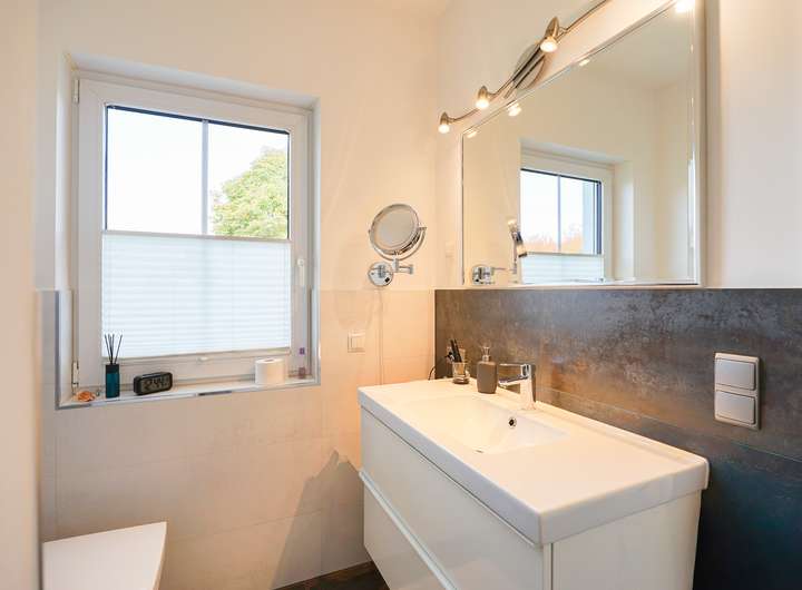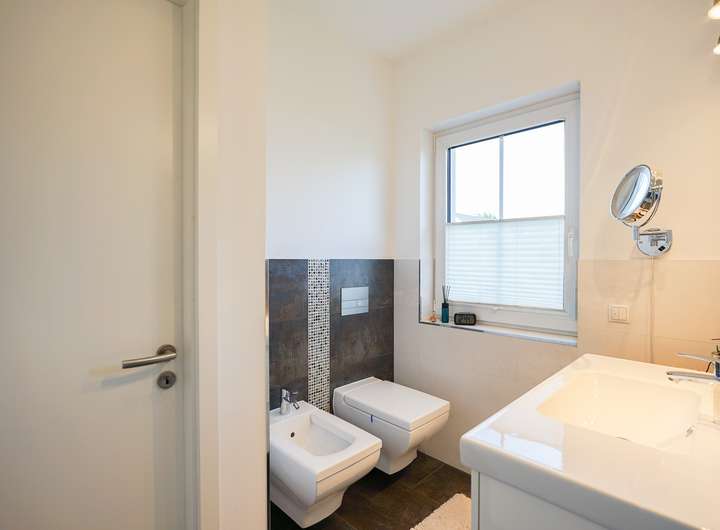 • Gästebad mit bodentiefer Dusche, WC & Bidet