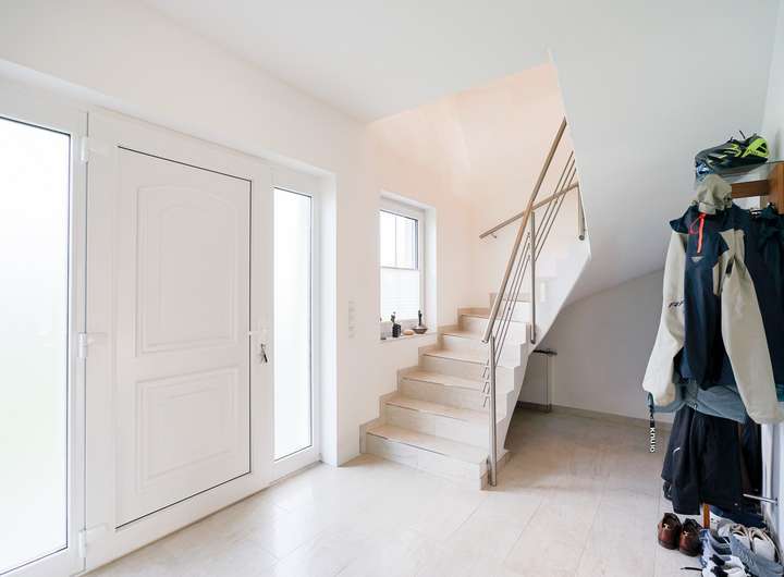 • Großformatiges Feinsteinzeug in Fluren, Treppen, Bädern und HWR