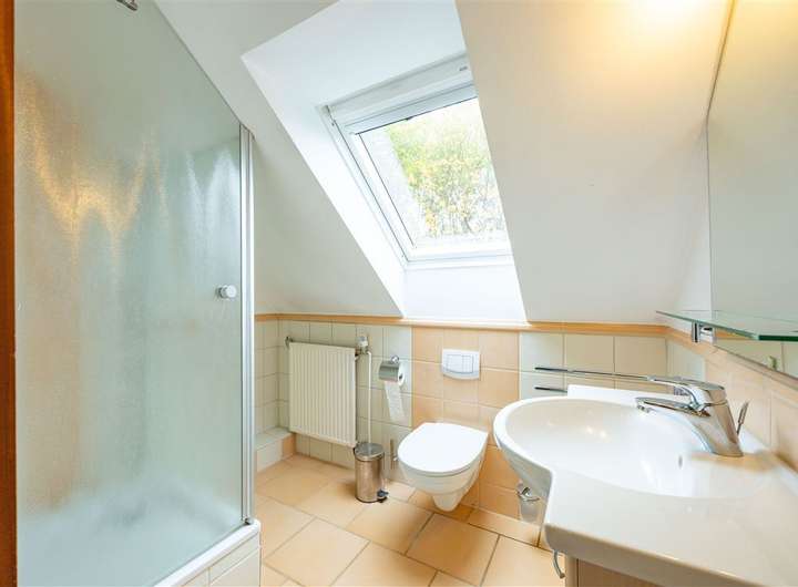 Im Dachgeschoss stehen den Besitzern zwei weitere schöne Schlafzimmer zur Verfügung, sowie ein Duschbad. Von hier gelangt man über eine kurze Treppe in den Spitzboden des Hauses, welcher optimal als Home-Office oder Spielzimmer genutzt werden kann.