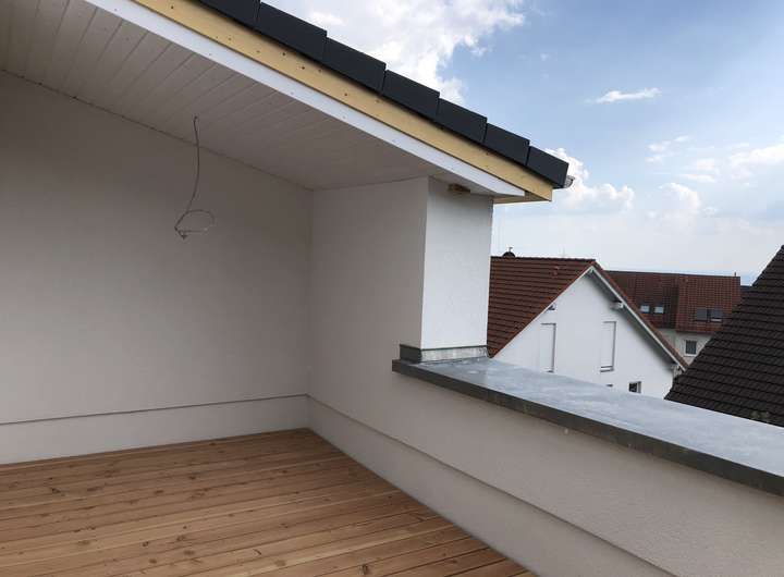 Im Dachgeschoss finden Sie ein attraktives Studio – auch als Generationen-Wohnung nutzbar mit schönem Duschbad mit WC und einer herrlichen teil überdachten Dachterrasse mit ca. 10 m² auf der Sie schöne Stunden genießen können.
