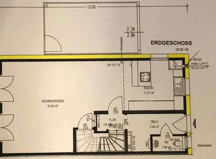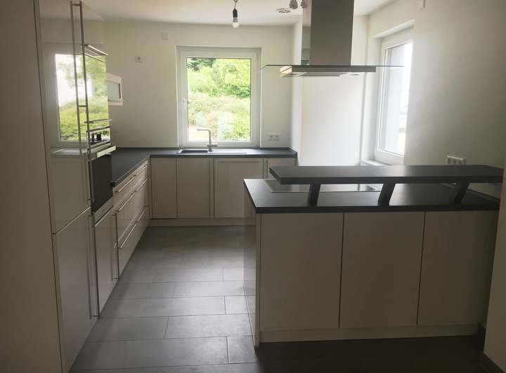 Im Erdgeschoss befindet sich der große Wohn-/Essbereich mit offener Küche (ca. 46 m²) und Zugang zum Garten und der Terrasse (SW-Ausrichtung ca. 15 m²), das Foyer und die Gäste-Toilette. Auch an die moderne und luxuriös ausgestattete Küche wurde gedacht.