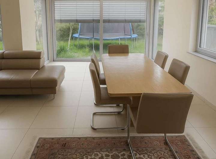 Dieses großzügig geschnittene Einfamilienhaus aus dem Jahr 2005 wurde in nachhaltiger, ökologischer Bauweise errichtet und liegt in Dortelweil unmittelbar am Feldrand auf einem Grundstück von rund 360 m². Beim Betreten öffnet sich ein luftiges Entrée. Rechts befinden sich ein Gäste-WC mit Dusche sowie ein flexibel nutzbarer Raum – ideal als Homeoffice, Gästezimmer oder zusätzliches Schlafzimmer.