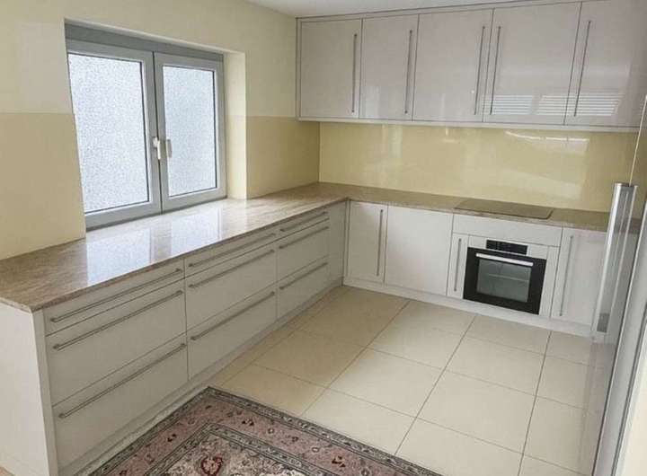 Der anschließende Wohnbereich mit Kamin schafft eine behagliche Atmosphäre und geht fließend in den offenen Essbereich über. Die neu eingebaute, moderne Küche überzeugt durch ihr zeitloses Gestaltungskonzept und die hochwertige Ausstattung. Eine elegante Holztreppe führt ins Obergeschoss mit drei lichthellen Schlafzimmern und einem zeitgemäßen Bad. In den oberen Etagen sorgt edler Parkettboden für ein warmes, stilvolles Ambiente.