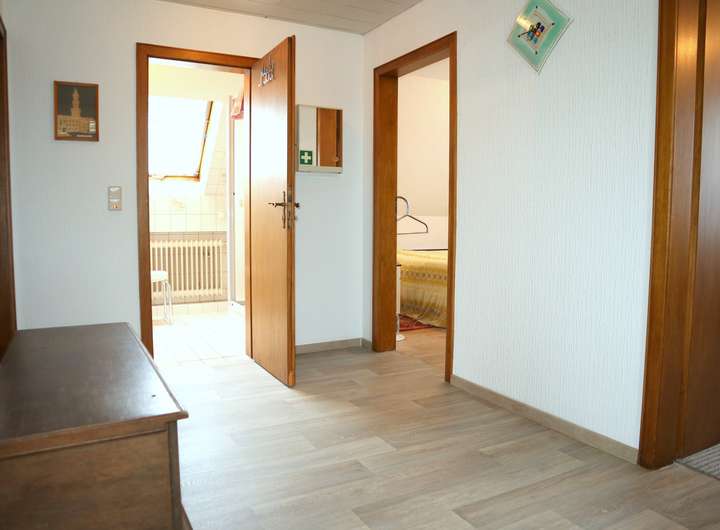 1 Flur, 1 Schlafzimmer, 3 Kinderzimmer, 1 Tageslicht-Badezimmer mit Badewanne und Dusche.