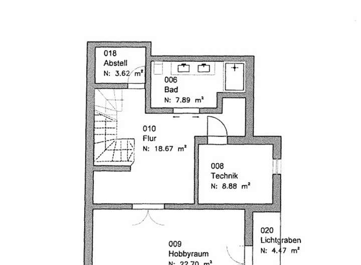 Angrenzend an das Untergeschoss befindet sich ein Heizungs- und Wäscheraum mit der Möglichkeit, diesen zur Staufläche zu nutzen.