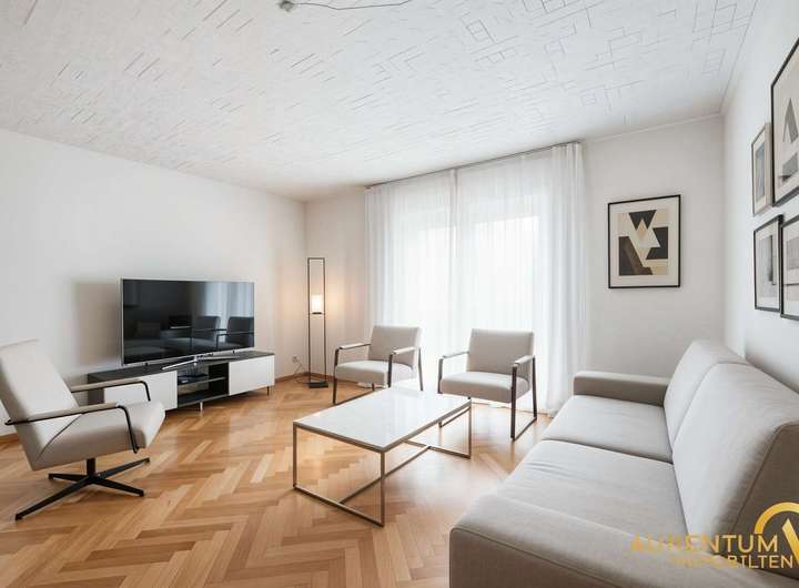 Die Wohnung wurde 2015 umfassend renoviert und befindet sich in sehr gepflegtem Zustand. Sie verfügt über drei Schlafzimmer, ein großes, helles Wohnzimmer mit Zugang zur Südterrasse, eine geräumige Wohnküche, ein Tageslichtbad sowie eine praktische Speisekammer.