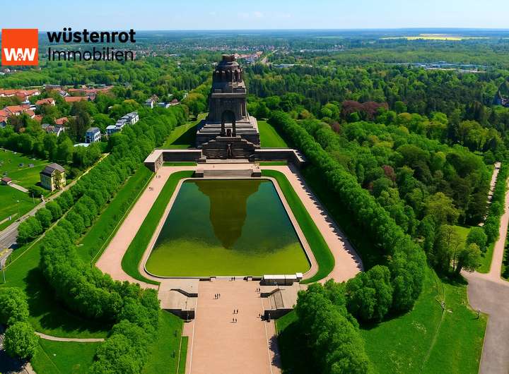 Die Lage spricht für sich und vereint zentrumsnahe Urbanität mit naturverbundenem Flair. In wenigen Minuten erreichen Sie Parkanlagen, Leipziger Seen, Schulen, Kitas, Ärzte sowie Einkaufsmöglichkeiten des täglichen Bedarfs. Auch die hervorragende öffentliche Verkehrsanbindung überzeugt. Die Innenstadt, der Hauptbahnhof sowie die Autobahnen A14 und A38 sind in wenigen Minuten erreichbar – ideal für Berufspendler und Vielreisende. Das Highlight ist der einmalige Blick auf Leipzigs Wahrzeichen - das Völkerschlachtdenkmal.