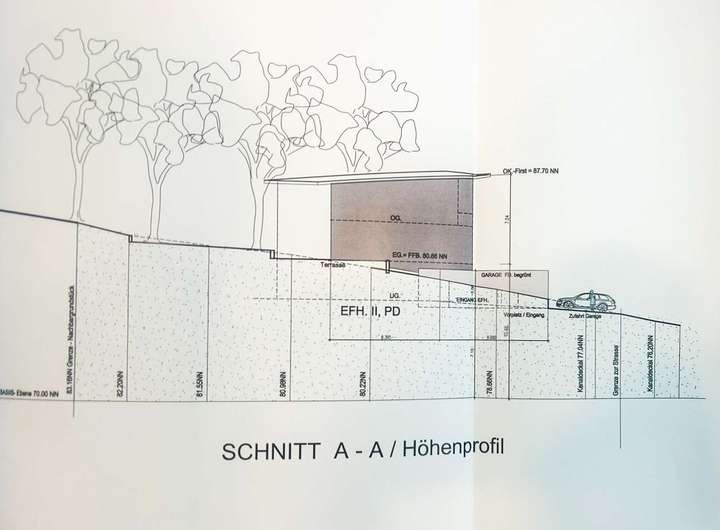Ein positiver Bauvorbescheid der Stadt Bonn aus dem Jahr 2019 bestätigt, dass hier ein Einfamilienhaus mit Einliegerwohnung in 2-geschossiger Bauweise mit Unterkellerung, Pultdach und Doppelgarage gebaut werden kann. Die genauen Bebauungsmöglichkeiten des Grundstücks sind von den Kaufinteressenten selbst mit dem Bauamt abzustimmen.