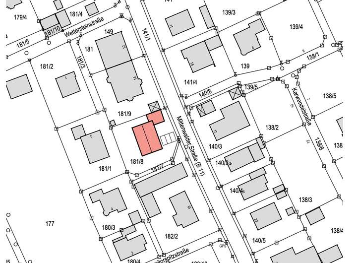 Das Grundstück liegt in zentraler Lage im Ort und beinahe alle wichtigen Einrichtungen sind fußläufig erreichbar.