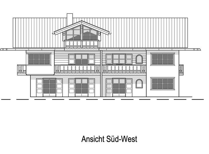 Das Grundstück ist eben und die Ausrichtung der Wohnungen ist nach Westen. Die etwas eingeschränkte Sicht der rechten Haushälfte erhält eine Aufwertung durch den Quergiebel mit