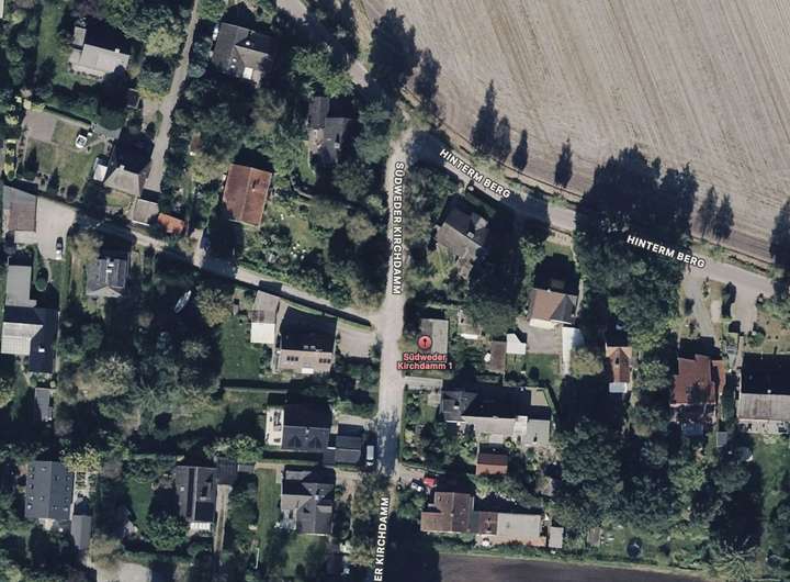 Die Lage am Südweder Kirchdamm zeichnet sich durch eine harmonische Mischung aus gewachsener Wohnbebauung, Feldern, kleinen Wegen und der Nähe zum historischen Ortskern aus. Das direkte Umfeld ist geprägt von Einfamilienhäusern und gepflegten Grundstücken – ideal für alle, die Ruhe und Privatsphäre schätzen, aber gleichzeitig die Nähe zu guter Infrastruktur wünschen.