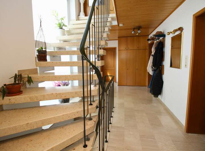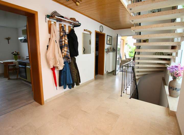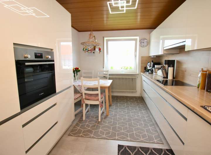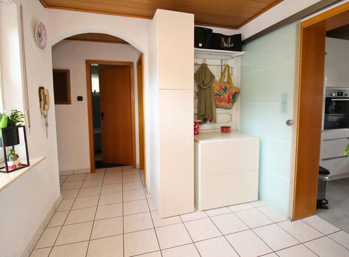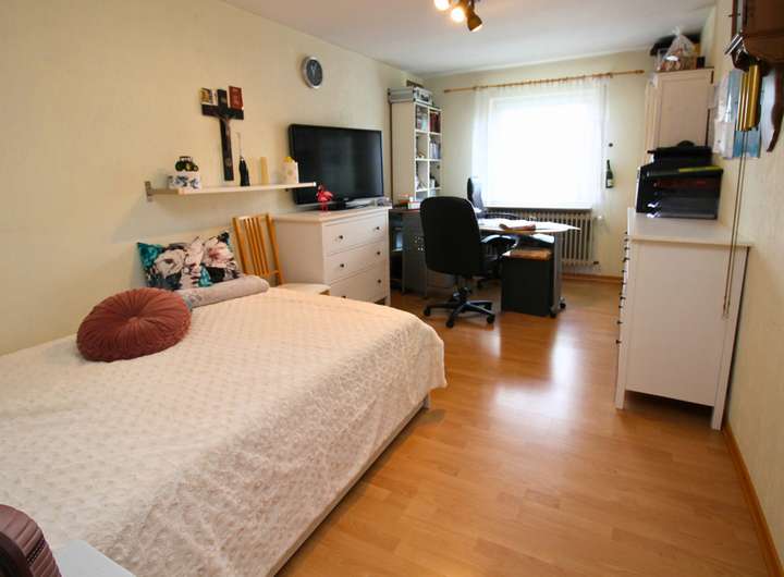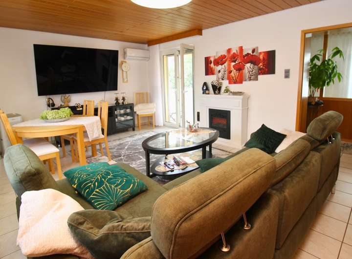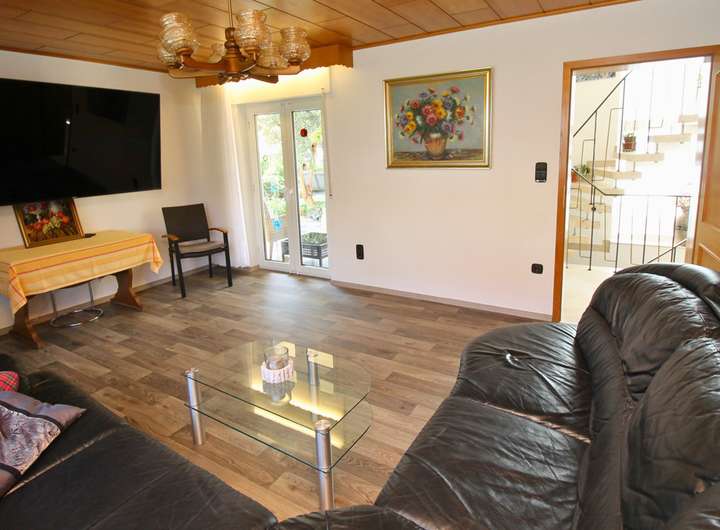 Dieses charmante Ein-Zweifamilienhaus wurde im Laufe der Zeit fünf mal umgebaut bzw. erweitert und ist so auf dem neuesten Stand. Mit einer Wohnfläche von 160 m² ist hier genügend Platz für 1-2 Familien. Das Objekt befindet sich auf einem großzügigen Grundstück von 680 m², welches sich ideal auch teilen lässt und so für weitere Bauvorhaben großes Potential bietet. Beim Betreten des Hauses empfängt Sie ein großer einladender Flur, der zu den verschiedenen Bereichen im Erdgeschoss führt. Hier finden Sie ein helles Wohnzimmer, das durch große Fenster viel Tageslicht erhält und direkten Zugang auf die Terrasse hat. Die angrenzende Küche ist funktional gestaltet und bietet ausreichend Platz für gemeinsame Mahlzeiten. Ein Schlafzimmer und ein modernes, behindertengerechtes Badezimmer runden das Raumangebot im Erdgeschoss ab. Im Obergeschoss wurde 1988 ein zusätzliches Zimmer angebaut, welches zur Zeit als Schlafzimmer genutzt wird. Die Küche ist sehr modern ausgestattet. Ein weiteres Zimmer kann als Kinderzimmer oder Büro genutzt werden. Highlight ist der Balkon, welcher direkt vom Wohnzimmer aus zugänglich ist und zum Entspannen im Freien einlädt. Auch das Obergeschoss verfügt über ein weiteres Badezimmer und eine Klimaanlage im Wohnzimmer und im Schlafzimmer, die für optimalen Komfort sorgen. Der Keller bietet zusätzlichen Stauraum. Eine große Doppelgarage mit Grube ist ideal für Tüftler und sorgt für komfortable Parkmöglichkeiten. Zwei weitere Stellplätze befinden sich direkt vor der Garage auf dem Grundstück. Der gepflegte Garten ist ein Paradies für Naturliebhaber und bietet zahlreiche Gestaltungsmöglichkeiten. Ein Brunnen sorgt für eine effiziente Bewässerung des Gartens. Mit der Photovoltaikanlage sind Sie für die Zukunft gut gerüstet, da sie eine nachhaltige Energie- und Einnahmequelle bietet.