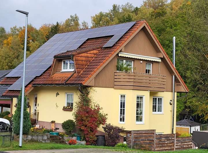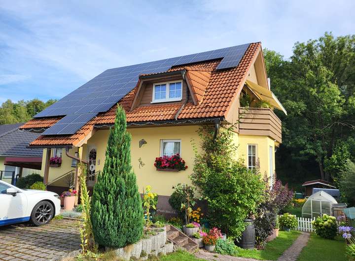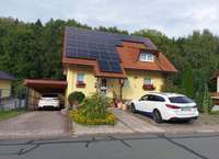 Das 1996 erbaute Einfamilienhaus wurde zwischen 2019 und 2023 umfassend modernisiert und technisch aufgewertet. Eine leistungsstarke Photovoltaikanlage (9,715 kWp) mit 5 kWh LFP-Batteriespeicher, Brauchwasserwärmepumpe und moderne Direktspeicherheizungen mit Digitalthermostaten bilden ein zukunftssicheres Energiekonzept. Die Prefa-Verkleidung in Holzoptik an Giebeln, Gauben und Balkon sowie der Carport unterstreichen den hochwertigen Gesamteindruck. Eine Wallbox für E-Mobilität ist ebenfalls vorhanden.