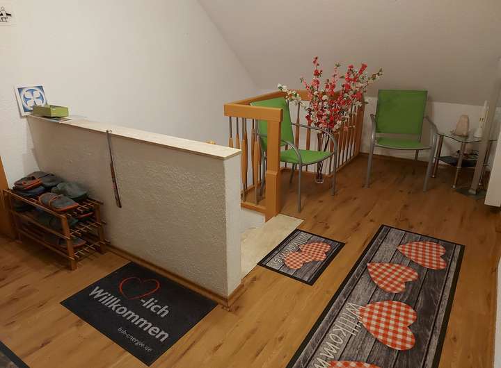 Das DG bietet zwei helle Zimmer mit Dachgauben und Balkonzugang, 1 indivuell nutzbaren Raum (Büro, Gäste etc.), ein modernes Bad mit Fußbodenheizung, begehbarer Dusche, WC, Waschplatz und Waschmaschinenanschluß, Diele mit Dachbodenzugang und Abstellkammer.