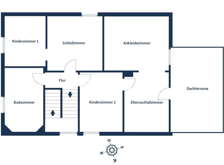 Das Obergeschoss präsentiert sich mit drei Schlafzimmern, einem Ankleidezimmer und direktem Zugang zur großen Süd-Dachterrasse. Sie ist ein echtes Highlight für Sonnenanbeter: Hier lassen sich ruhige Stunden im Freien genießen – sei es mit einem guten Buch oder entspanntem Blick in die Umgebung. Ein Schlafzimmer verfügt über eine Klimaanlage, die auch in den Sommermonaten für ein angenehmes Raumklima sorgt. Im Erdgeschoss befindet sich ein Bad mit Regendusche; das Bad im Obergeschoss kann nach eigenen Vorstellungen neu gestaltet werden.