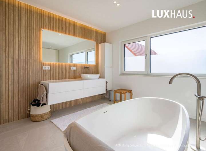 Bitte beachten Sie, dass die dargestellten Bilder und Grundrisse beispielhaft sind und unter Umständen Sonderbauteile enthalten, die nicht im angegebenen Preis beinhaltet sein können.