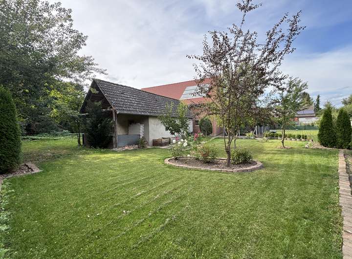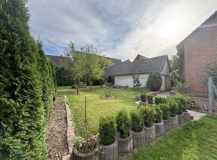 Das Grundstück verfügt zudem über einen ansprechenden Baumbestand, der für eine angenehme Atmosphäre sorgt und zusätzlichen Charme verleiht.