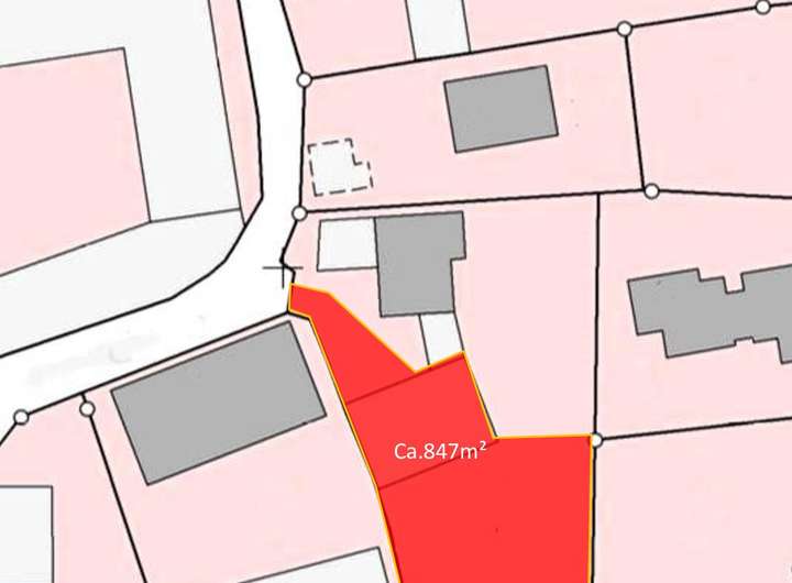 Zum Verkauf steht eine noch zu vermessende Teilfläche von ca. 847 m² in ruhiger Lage. Auf dem Grundstück befindet sich eine Scheune mit einer Grundfläche von ca. 192 m² und einer Höhe von ca. 9,60 m.