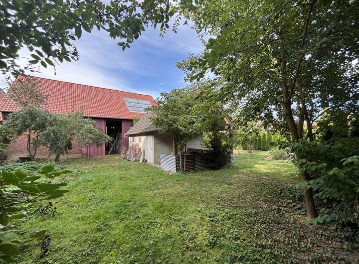 Die Scheune bietet vielfältige Nutzungsmöglichkeiten – ein Ausbau ist denkbar und eröffnet zahlreiche Gestaltungsspielräume. Alternativ kann das Gebäude auch zurückgebaut werden, um die Fläche nach individuellen Vorstellungen zu nutzen.
