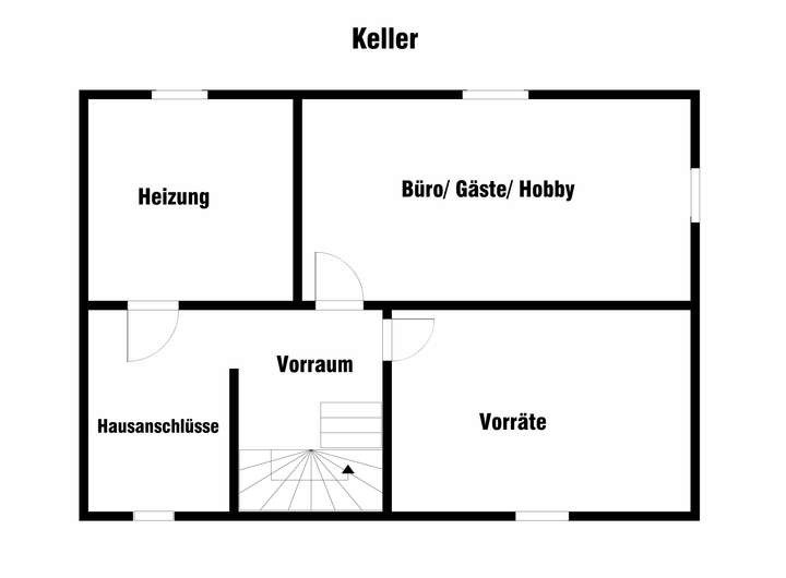 Im Vollkeller befindet sich der Heizungskeller sowie drei weitere geflieste Räume, die individuell genutzt werden können. Hier befindet sich auch der Waschmaschinenanschluss.