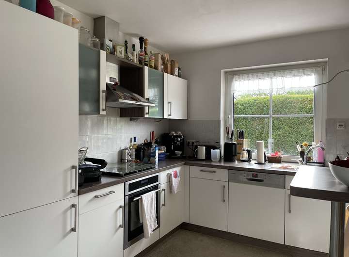 Das schöne Einfamilienhaus befindet sich in einer ruhigen Sackgassenlage. Auf einer Wohnfläche von etwa 125 m² gruppieren sich ein Wohn-/Essbereich, drei Schlafzimmer, zwei Bäder, eine moderne Einbauküche und eine malerische Sonnenterrasse. Zusätzlich gibt es einen wohnlich gestalteten Keller, der voll gefliest ist und über einen 23 m² großen Büro-/Hobbyraum mit 2 Fenstern und Heizkörpern verfügt.