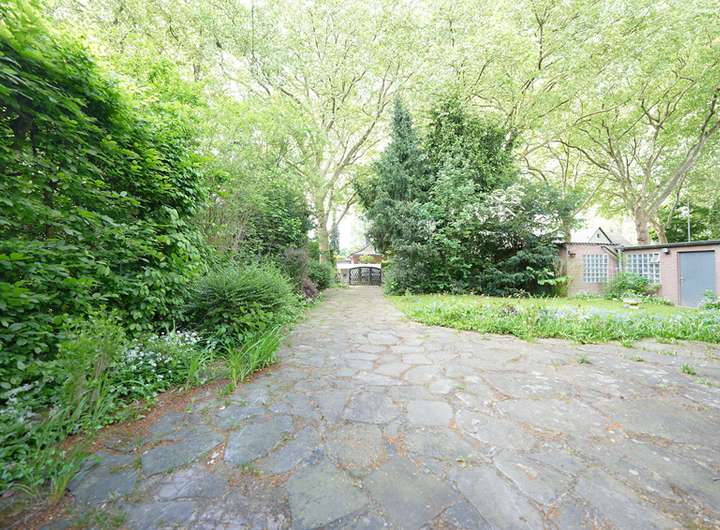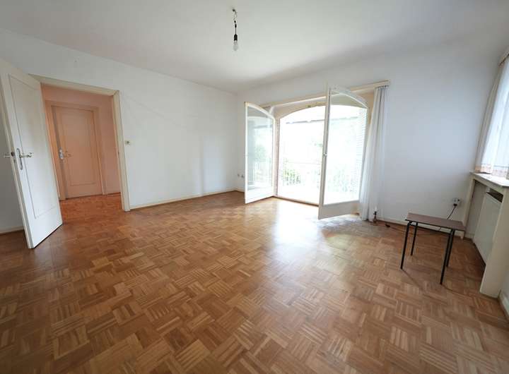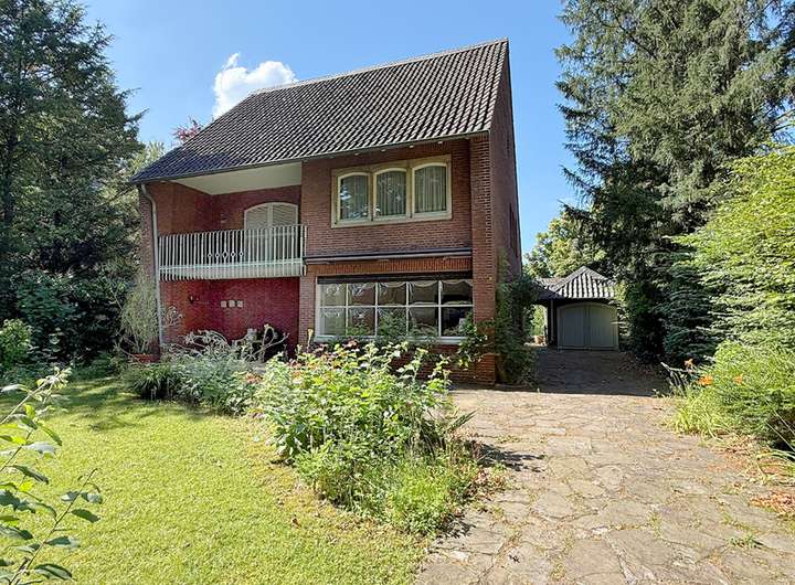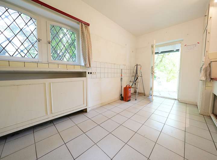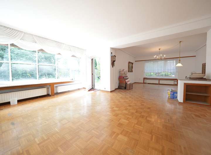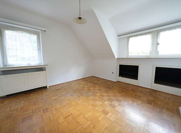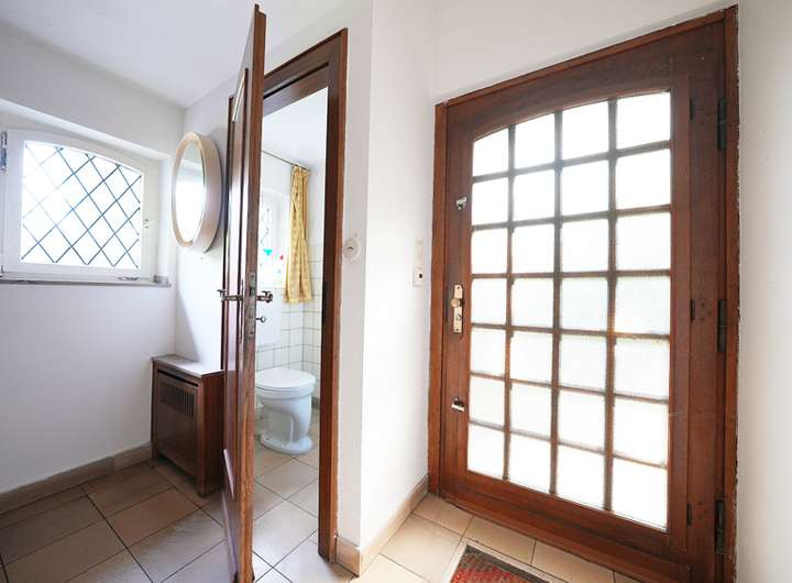 Das Gebäude ist bis auf die Bäder und die Gaszentralheizung im ursprünglichen Zustand des Baujahres. Bei Erhalt des Gebäudes wären somit eine umfassende Modernisierung sowie eine energetische Sanierung notwendig. Das Haus steht ca. 20 m entfernt von der Straße, es kann auch entsprechend dem Baufenster mit einem ca. 24 m tiefen und ca. 12 m breiten Gebäude bebaut werden. Linker Hand befindet sich auf dem großen Grundstück eine Doppelgarage, rechts hinter dem Gebäude eine weitere Einzelgarage.