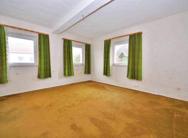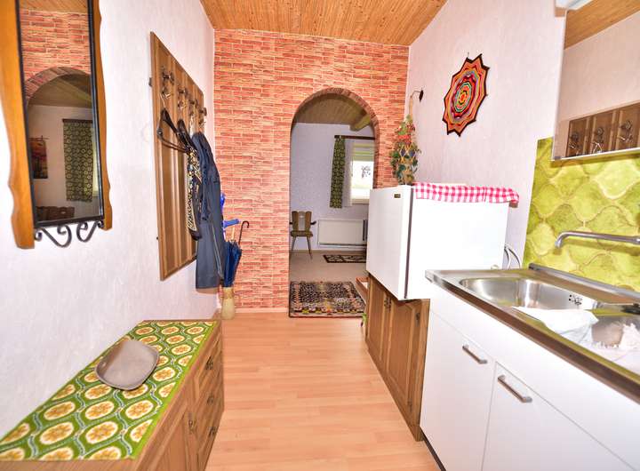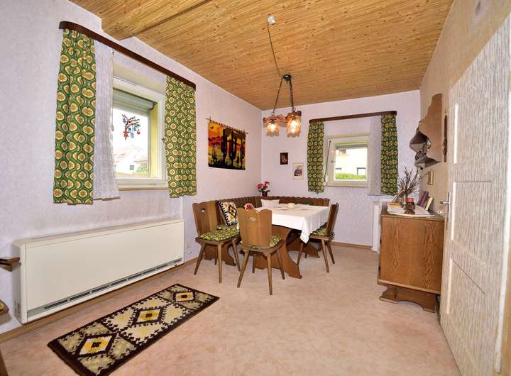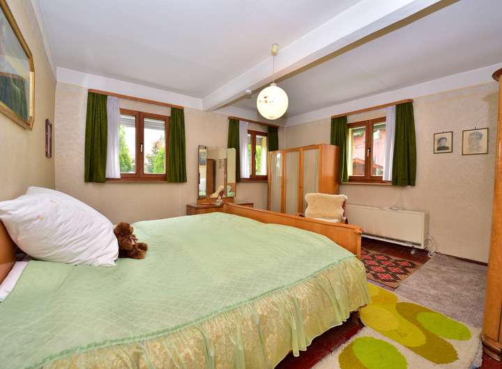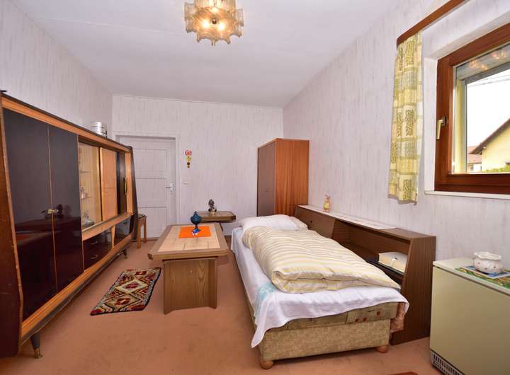 Es kann als Einfamilien- oder als Zweifamilienhaus genutzt werden. Der Rundkeller als außergewöhnliche Bauweise in der Küche, das Erdgeschoß hat eine durchgängige Raumzone mit Küche, Stube und Kammer. Im Obergeschoß befinden sich 5 Zimmer und im DG weitere 2 Zimmer. Das Nebengebäude aus dem Jahr 1900 steht nicht unter Denkmal, 4 Garagen gehören ebenfalls zur Liegenschaft dazu.