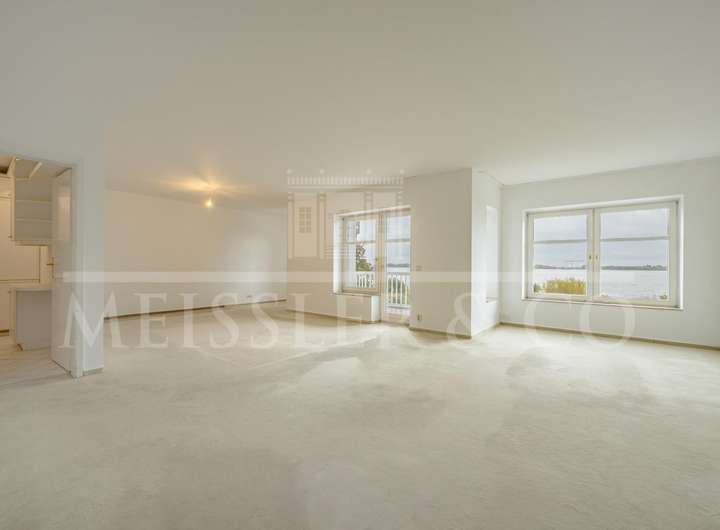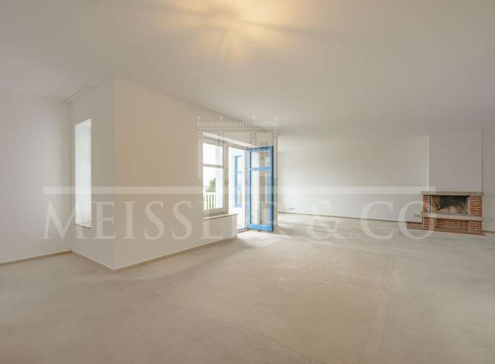 Die Wohnung befindet sich in einem sanierungsbedürftigen Zustand und bietet somit eine hervorragende Grundlage, um individuellen Wohnvorstellungen Raum zu geben. Sie verfügt über einen großzügigen Wohn- und Essbereich mit offenem Holzkamin. Von hier aus hat man einen herrlichen Blick auf die Elbe. Die angrenzende Küche befindet sich in nördlicher Ausrichtung und lässt die Möglichkeit eines offenen Küchenkonzeptes zu. Zwei Schlafzimmer befinden sich im hinteren Teil der Wohnung. Ein Duschbad en Suite mit Waschmaschinenanschluss und Fenster befindet sich hinter der Küche. Ein Gäste-WC ist weiterer Bestandteil dieser Wohnung.
