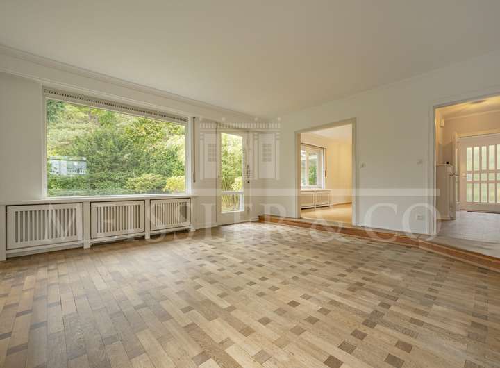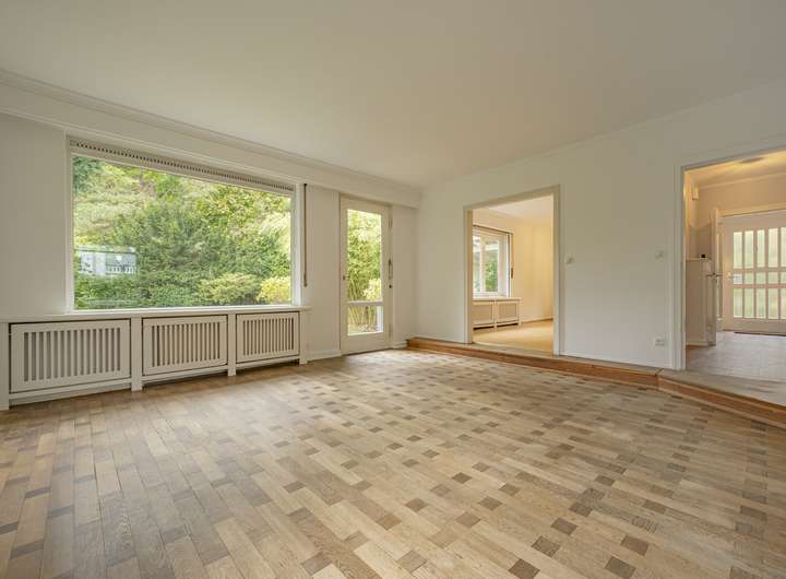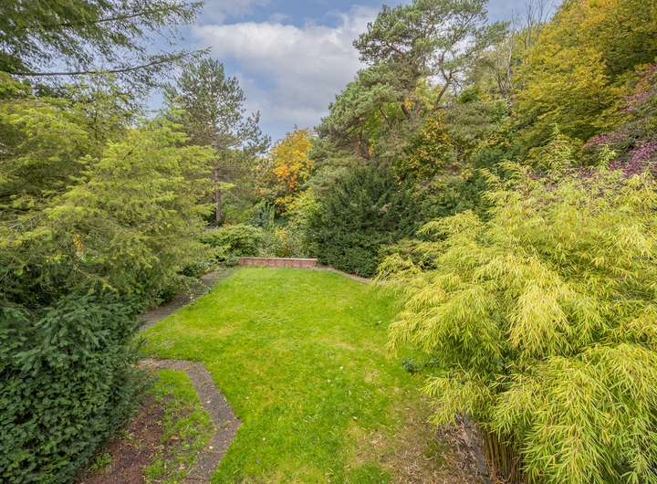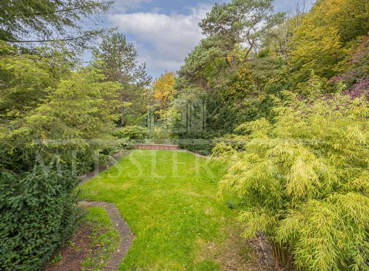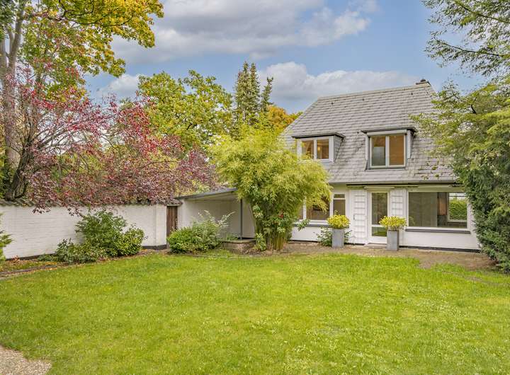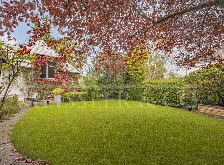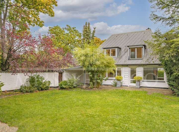 Auf einem ca. 1.199 m² großen Südwestgrundstück entstand hier im Jahr 1955 ein Architektenhaus, das um 1966 erweitert und in 2005 modernisiert worden ist. Das Grundstück bietet einen liebevoll angelegten, nicht einsehbaren Garten mit weitläufigen Rasenflächen und verschiedenen idyllischen Sitzplätzen. Ein überdachter, windgeschützter Freisitz sowie eine gepflegte Einfriedung durch Mauern und Zäune schaffen ein hohes Maß an Privatsphäre.