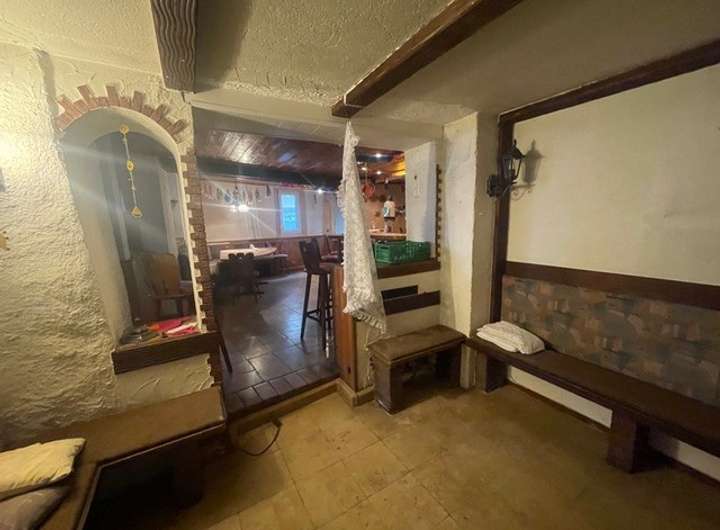 Das Eckhaus, Baujahr ca. 1940, verfügt über eine Nutzfläche von 55 m2 nebst zusätzlichen Keller- und Garagenfläche im Erdgeschoß. Dort wurde mit Küche, Lagerfläche und Toiletten für Männlein und Weiblein sowie Theke und Schank- bzw. Bewirtungsraum die vorgenannte Gaststätte betrieben.