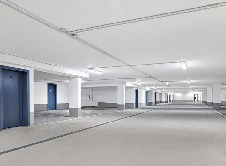 Jedes Reihenhaus verfügt über zwei Tiefgaragenstellplätze mit