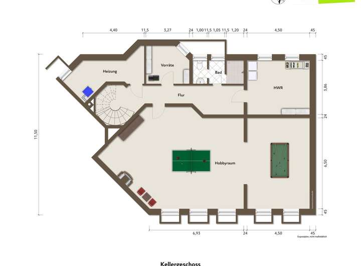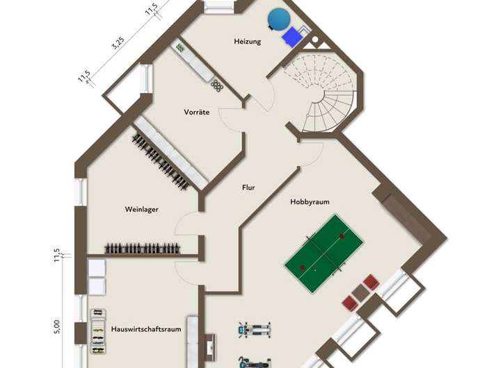 Durch diese Deckenhöhe bietet auch der Keller vielfältige Nutzungsmöglichkeiten.