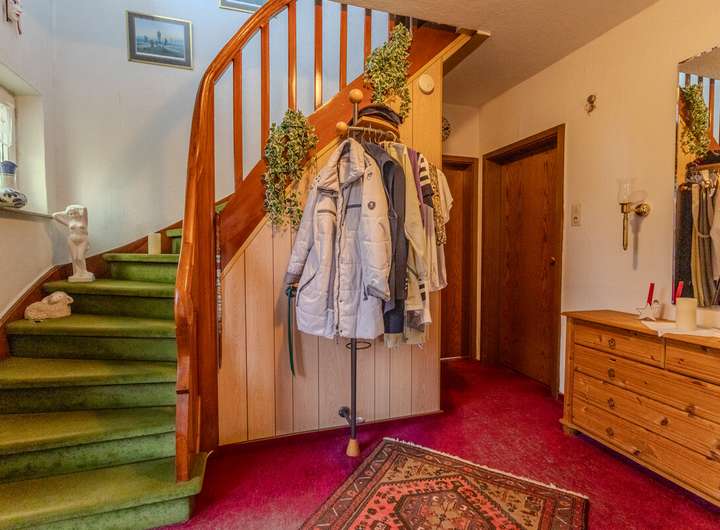 Die Raumaufteilung ist klassisch und funktional gestaltet, sodass sich sowohl großzügige Wohnbereiche als auch individuelle Rückzugsorte realisieren lassen. Im Vollkeller steht zusätzliche Nutz- und Abstellfläche zur Verfügung – ideal für Vorräte, Hobbyräume oder Haustechnik.