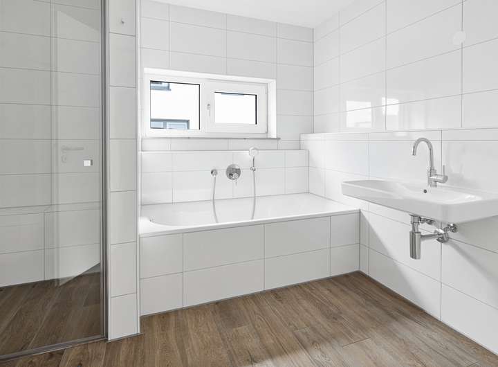 Badewanne und Dusche im 1. OG vor.