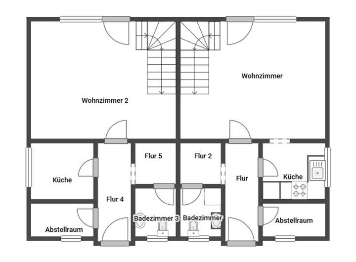 + Zwei separate, identisch aufgebaute Wohneinheiten mit jeweils eigenem Eingang