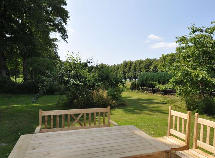 Auf der Terrasse lassen sich die Wildgänse beobachten wie sie abends von den Wiesen auf den Wardersee ziehen. Auch Milan und Seeadler kreisen gelegentlich auf Beutezug über das Grundstück.