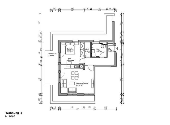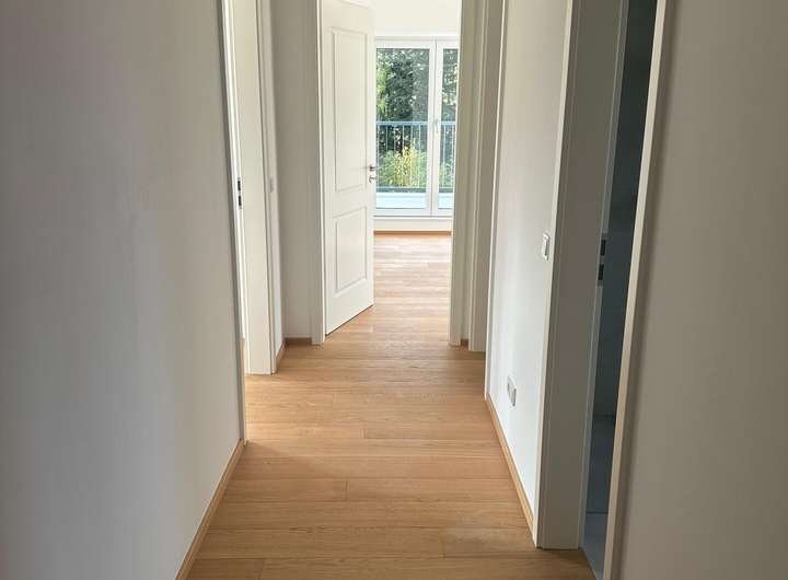 Gegenüber des Abstellraums öffnet sich der großzügige Wohn- und Essbereich – das Herzstück der Wohnung. Eine moderne Einbauküche erfüllt höchste kulinarische Ansprüche, während der offene Wohnbereich mit rund 26 m² Raum für einen großen Esstisch, eine gemütliche Sofalandschaft sowie individuelle Gestaltungsideen bietet. Von hier aus gelangen Sie sowohl auf den Balkon. Je nach Tageszeit oder Stimmung können Sie den perfekten Außenbereich wählen – ob sonnig oder schattig, gesellig oder ruhig.