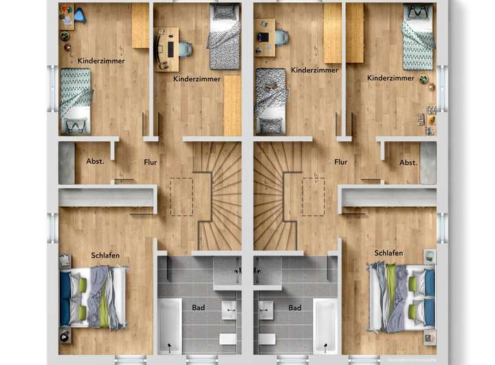 Die zweigeschossigen Gebäude werden auf eigenen Grundstücken realisiert und bieten Ihnen und Ihrer Familie ein wunderbares neues Zuhause. Mit Wohnflächen von jeweils 128m² und insgesamt 4 Zimmern haben Sie Raum, um Ihre Wohnträume zu verwirklichen.