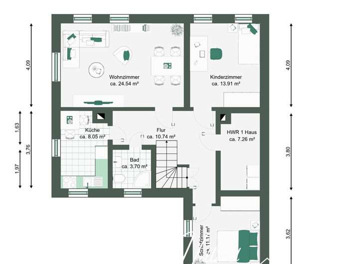 Die im Exposé enthaltenen Fotografien und Visualisierungen dienen der allgemeinen Veranschaulichung. Die Bilder können digital optimiert oder mittels moderner Bildbearbeitung, einschließlich KI-gestützter Verfahren, angepasst worden sein. Maßgeblich für Beschaffenheit, Zustand und Umfang der Immobilie ist ausschließlich der persönliche Eindruck bei einer Besichtigung sowie die Regelung im notariellen Kaufvertrag.