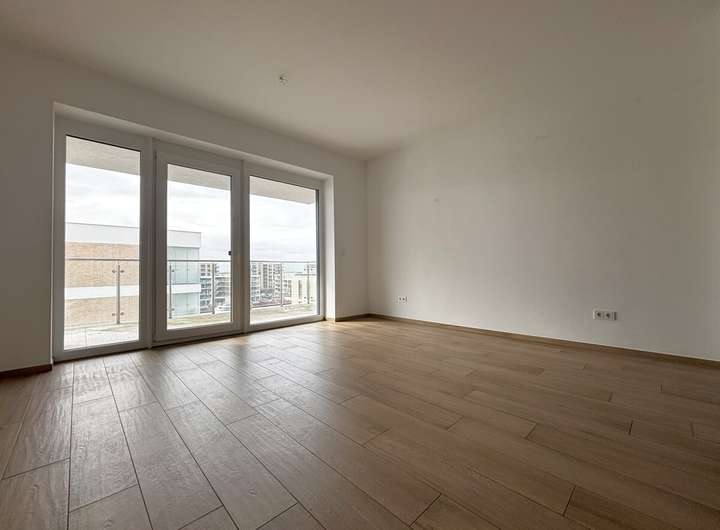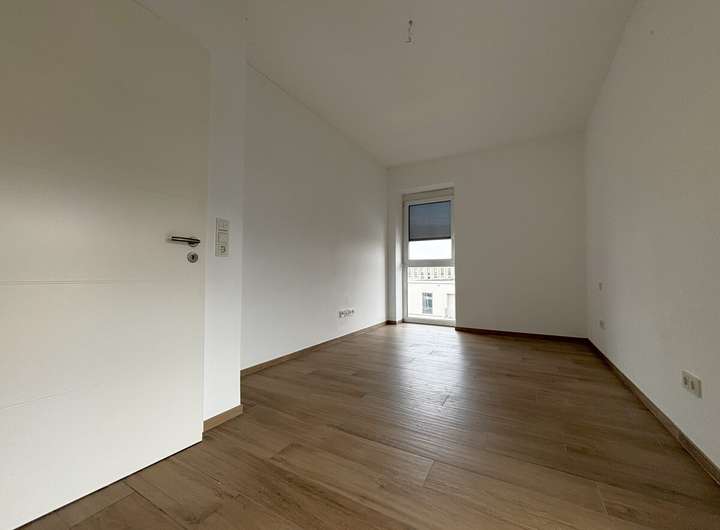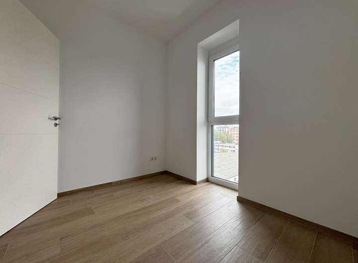 Die Wohnung ist mit einem außenliegenden Sonnenschutz in Form von hochwertigen Textil-Screens ausgestattet, die sowohl für ein angenehmes Raumklima als auch für Privatsphäre sorgen. Wand- und Deckenflächen sind mit Malervlies versehen und in einem modernen Weißton gestrichen, was den hellen und freundlichen Charakter der Räume betont.