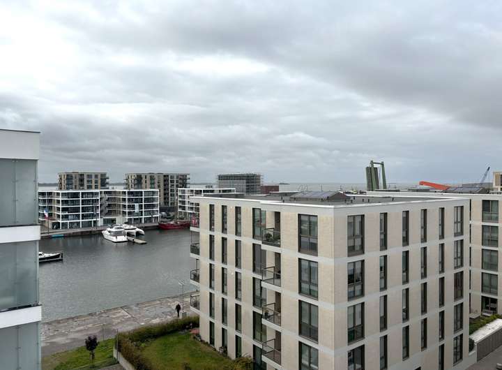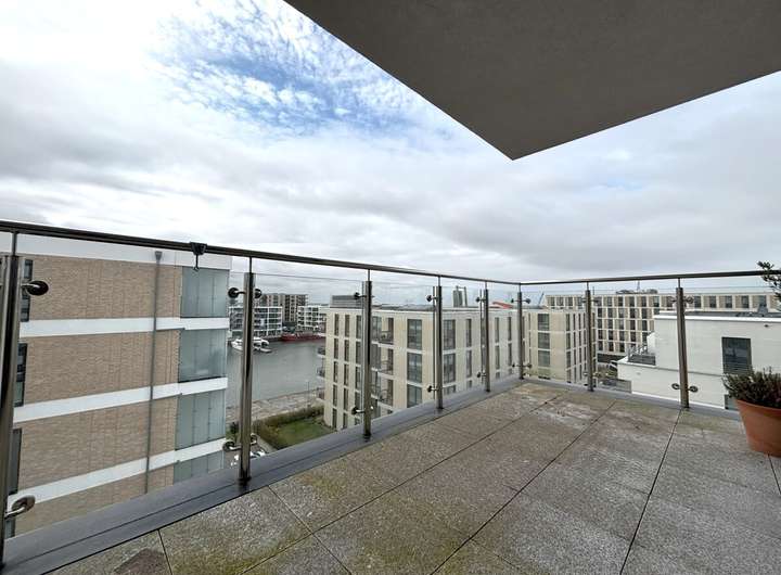 Diese lichtdurchflutete 2,5-Zimmer-Wohnung im 5. Obergeschoss überzeugt durch ihre moderne Ausstattung, ihre durchdachte Raumaufteilung und eine außergewöhnliche Lage direkt am Hafen. Die großzügigen Räume mit einer Deckenhöhe von ca. 2,65 m schaffen ein offenes und angenehmes Wohngefühl, das durch die bodentiefen, dreifachverglasten Kunststofffenster (außen anthrazit, innen weiß) zusätzlich unterstrichen wird.