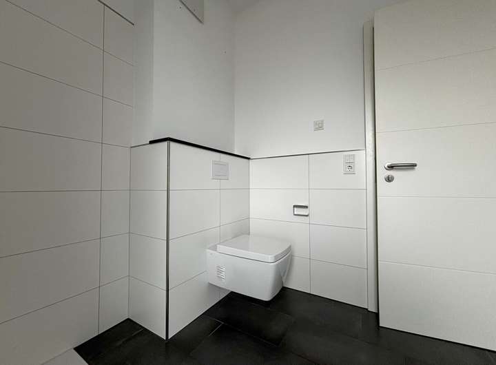 Die stilvolle Ausstattung setzt sich in den geschmackvollen Wand- und Bodenfliesen fort. Eine Fußbodenheizung sorgt ganzjährig für angenehme Wärme und hohen Wohnkomfort. Der separate Hauswirtschaftsraum mit Waschmaschinenanschluss bietet zusätzlichen Stauraum und praktische Nutzungsmöglichkeiten im Alltag.