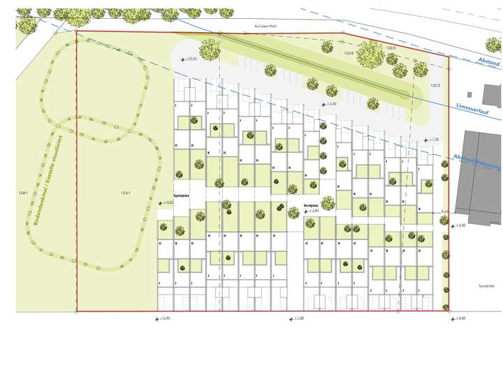 Bebaubarkeit: 27 Reihenhäuser (WFL ca. 130-137 m2) mit Stellplätzen. Baugenehmigung liegt vor.