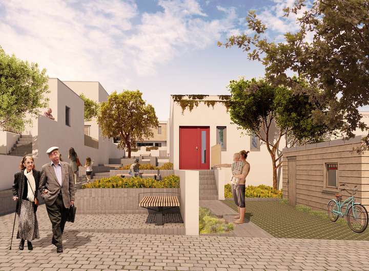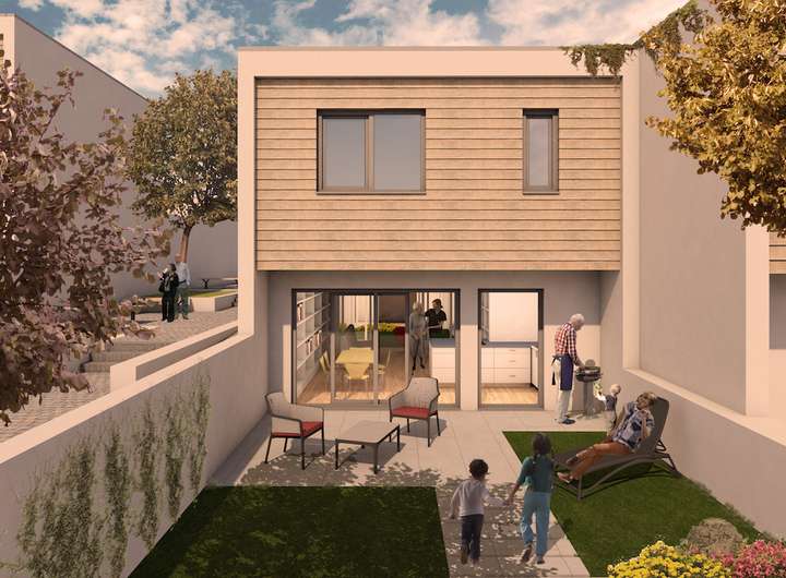 Die in modulartiger Bauweise konzipierten Häuser sind als ein Wohnen für jedes Alter entwickelt worden. Das stufenfreie Erdgeschoss mit Schlafzimmer und Wohnzimmer ist für ältere Käufer ideal. Genauso ist das Haus auch für eine Familie geeignet, da sich im 1. OG noch zwei weitere Schlafzimmer und ein Bad befinden.