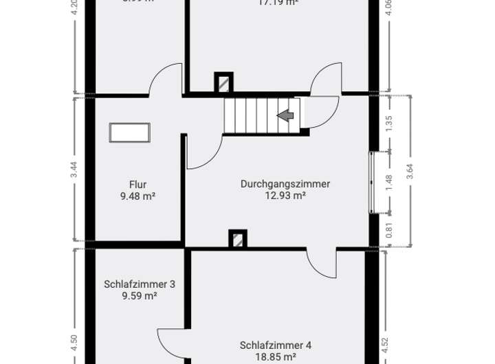 Im Obergeschoss erwarten Sie fünf Zimmer, eines davon als großzügige Diele mit Zugang zu allen weiteren Räumen.