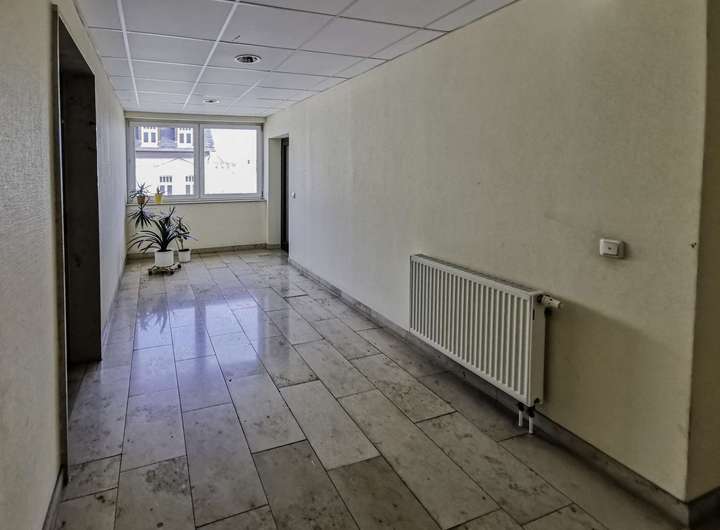 Sie betreten den mit Laminat ausgelegten Flur über das großzügige Treppenhaus und haben Zugang zu allen weiteren Räumlichkeiten. Linkerhand gelangen Sie in das raumhoch geflieste Wannenbad. Gegenüber von jenem erreichen Sie das helle Wohnzimmer mit angrenzender, separater Küche.